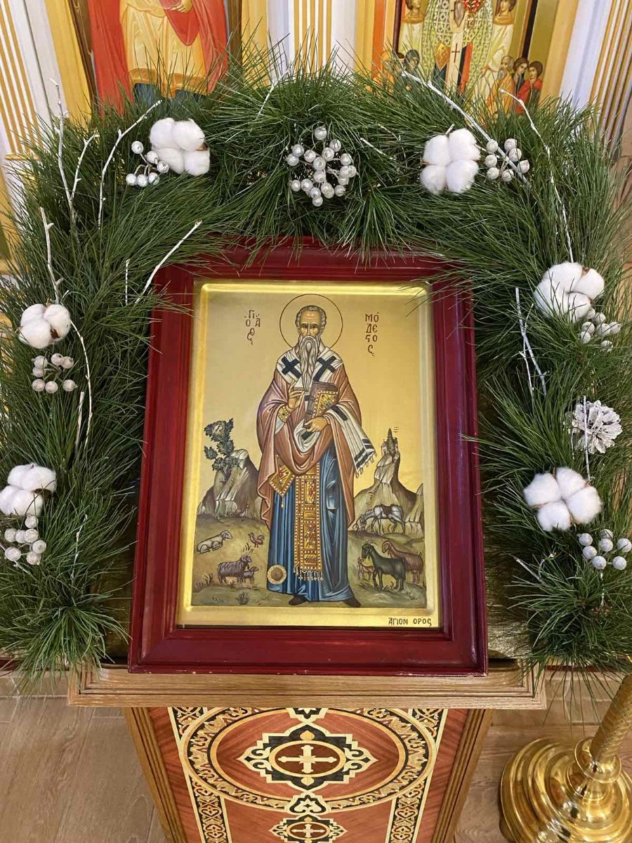 Икона с частицей мощей святителя Модеста, архиепископа Иерусалимского (5-7 января 2024 года) В рождественские дни 2024 года наш храм впервые за всю его историю посетила святыня - икона с мощами святителя Модеста архиепископа Иерусалимского.
