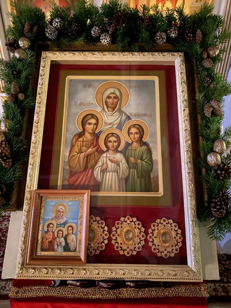 Икона с мощами мучениц Веры, Надежды, Любови и их матери Софии (27 декабря 2024 года - 9 января 2025 года) В светлые Рождественские и Новогодние дни 2025 года наш храм посетила икона с мощами особо почитаемых святых угодниц Божиих, чьи имена носят многие верующие. Приезд святыни стал поистине радостным событием и многие молились перед святыней, прося покрова и помощи у угодниц Божиих.