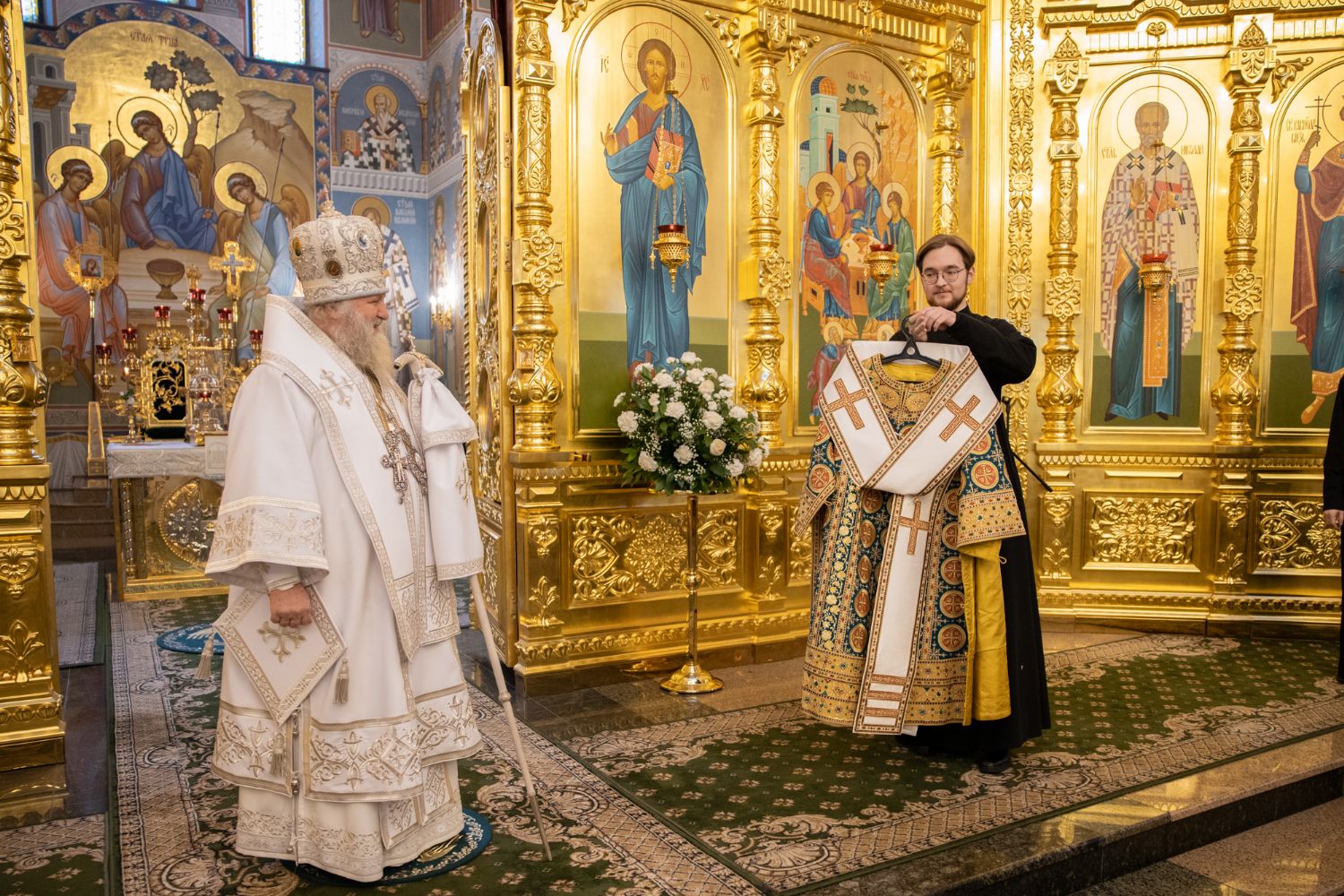 После от лица духовенства и паствы Ханты-Мансийской епархии архипастырю преподнесли архиерейское облачение.