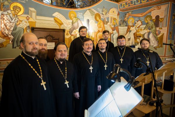 Богослужебные песнопения исполнили: хор Духовенства Ханты-Мансийской епархии под управлением иерея Григория Белянина, хор Троицкого кафедрального собора г. Сургута под управлением Юлии Мануйловой.