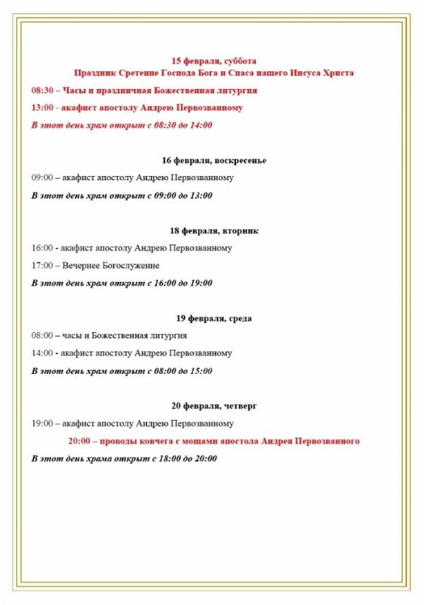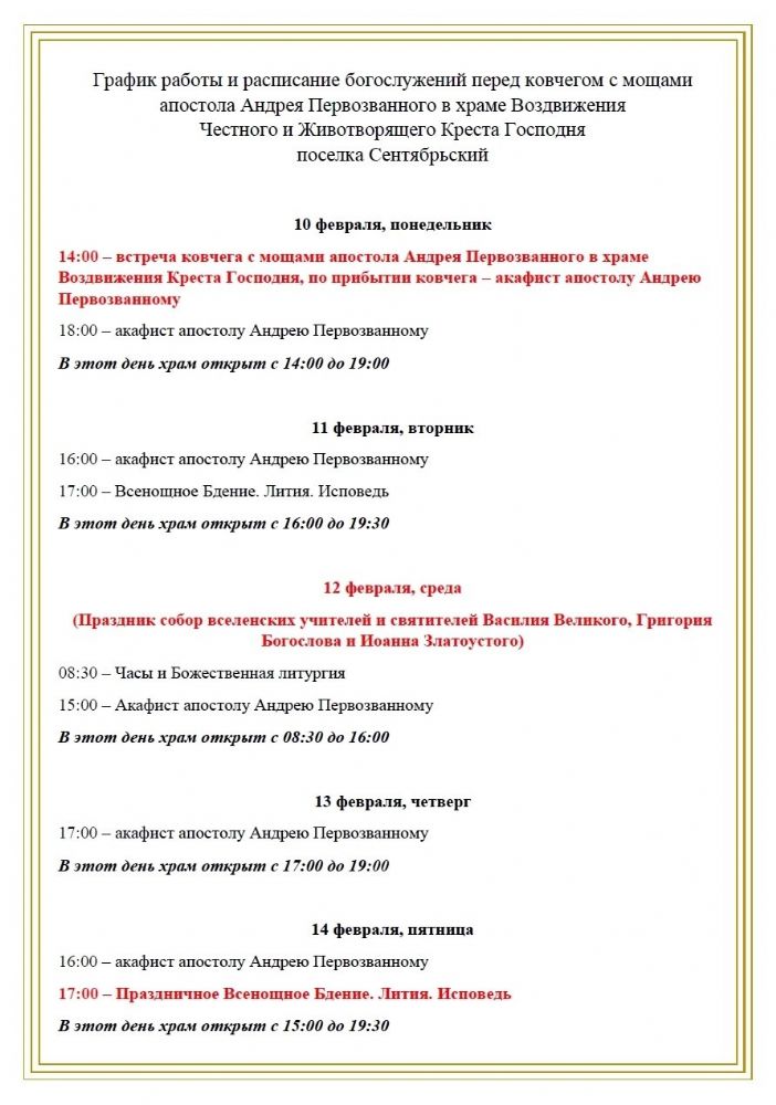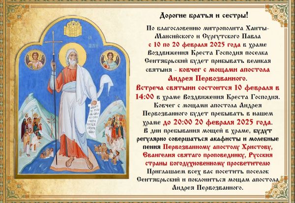 В поселок Сентябрьский прибудет ковчег с мощами апостола Андрея Первозванного