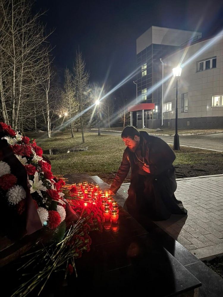 Поздно вечером настоятель храма вместе с молодежью и жителями поселения приняли участие во Всероссийской акции "Свеча памяти" в память о павших Героях в Великой Отечественной войне