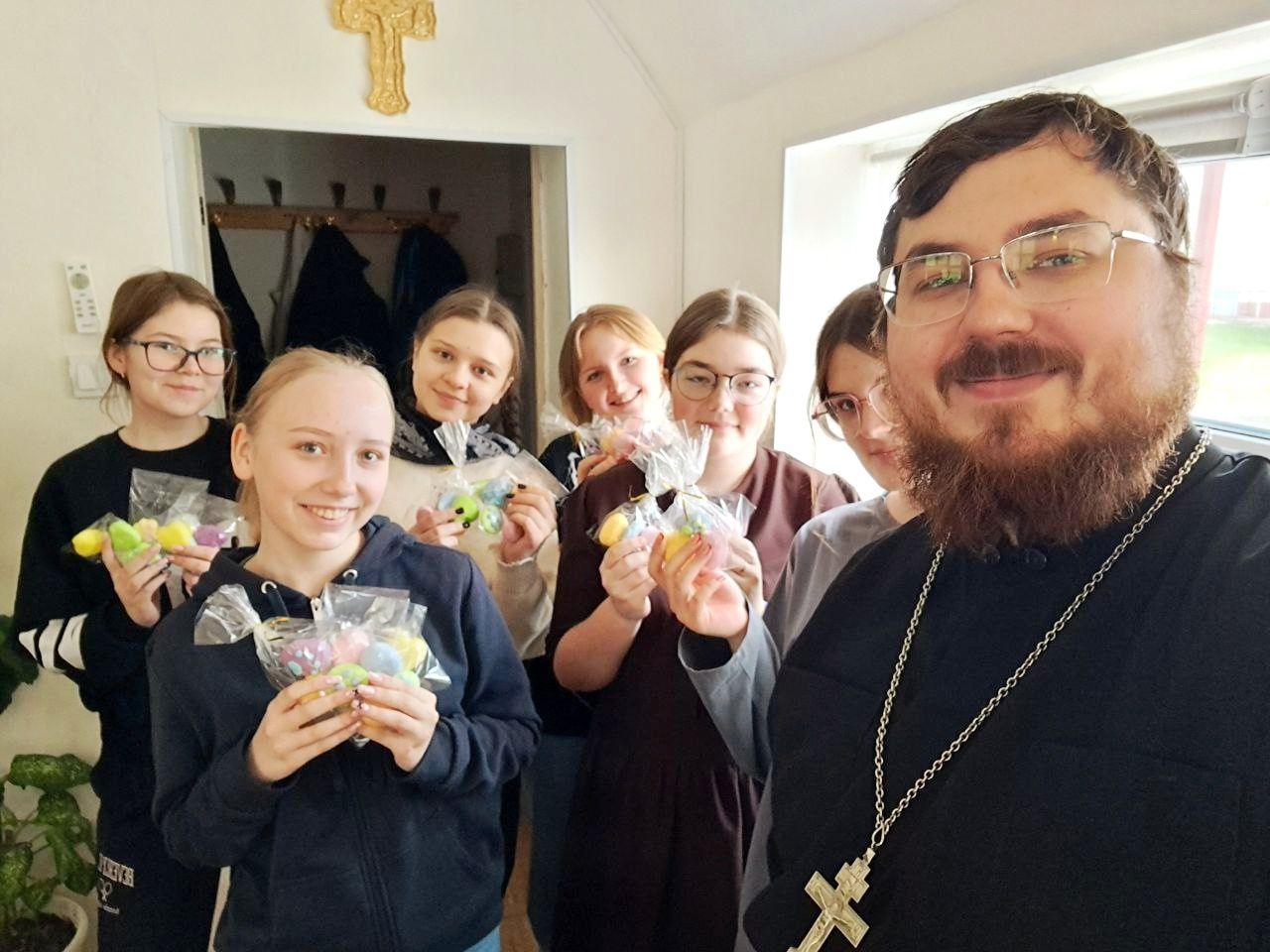 По окончании молебного пения в здании Старого храма состоялось небольшое чаепитие. В теплой дружной атмосфере отец Иоанн пообщался с выпускниками и дал им отличное напутстсвие. По окончании выпускникам были подарены памятные сладкие подарки.
