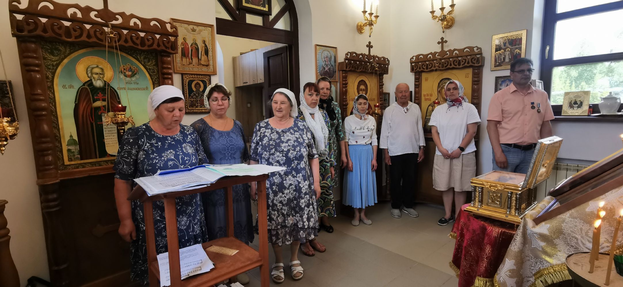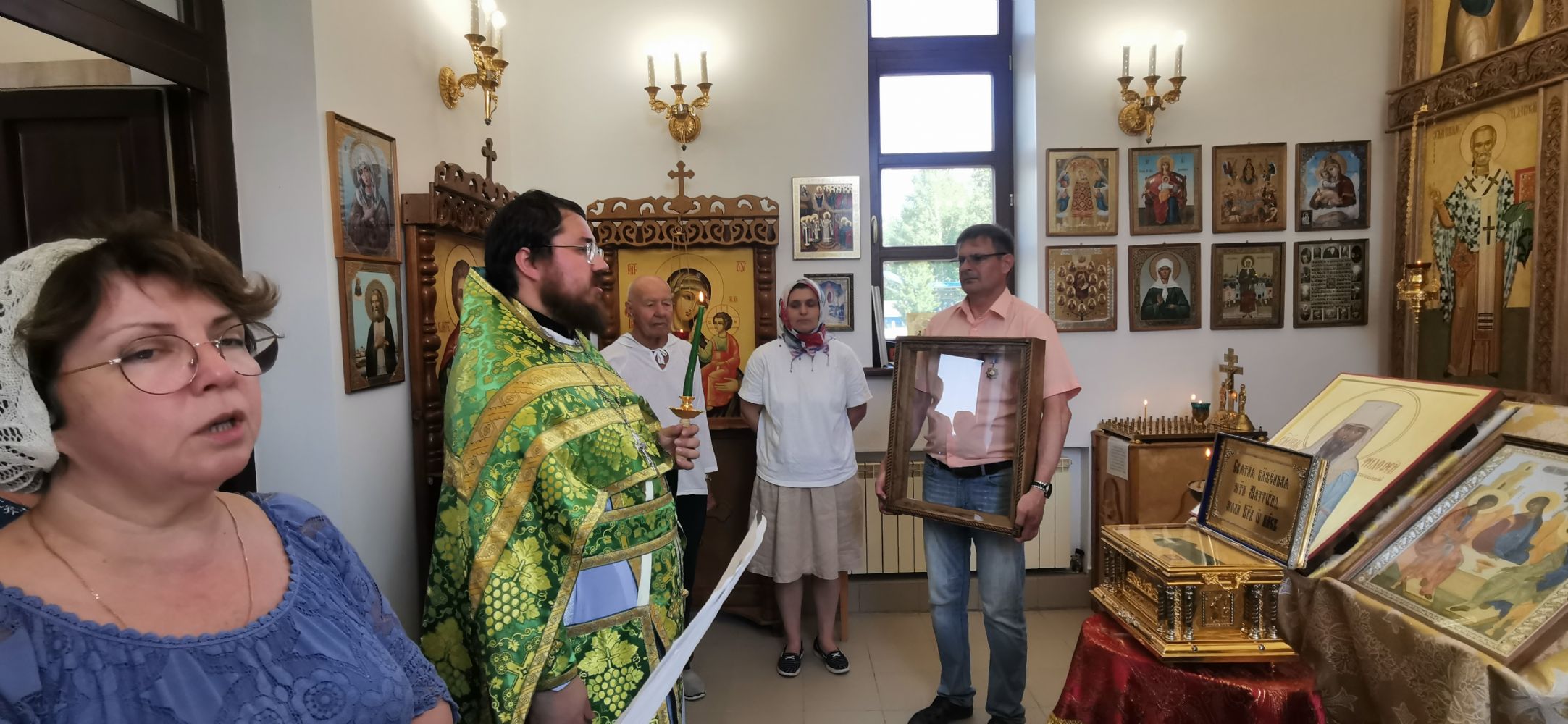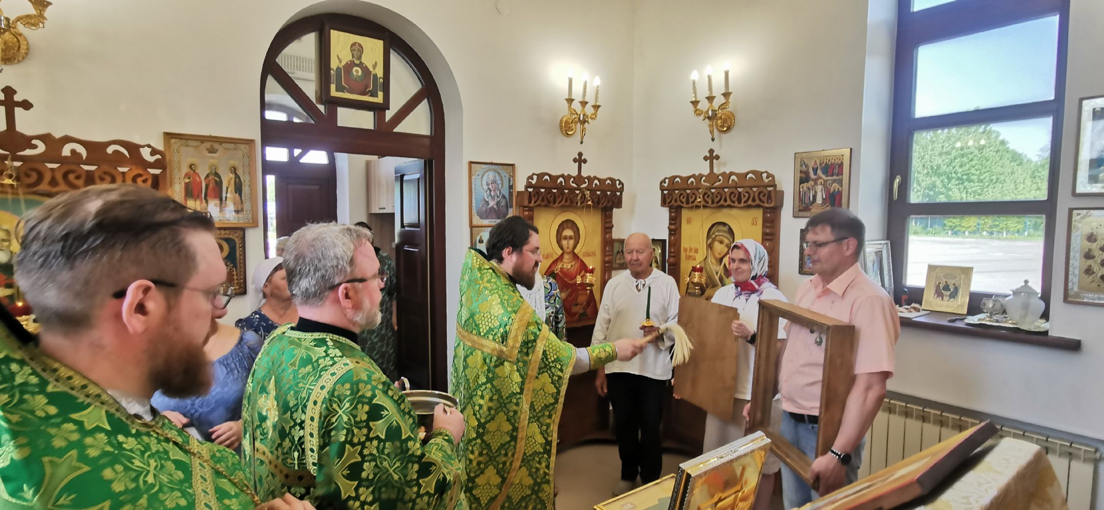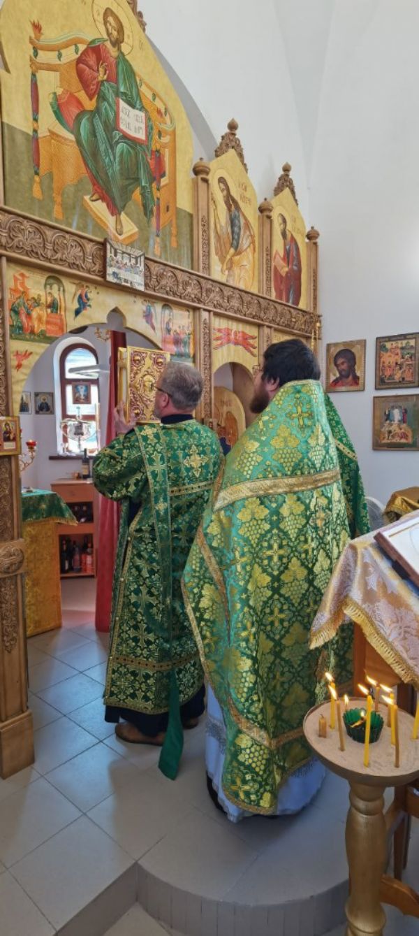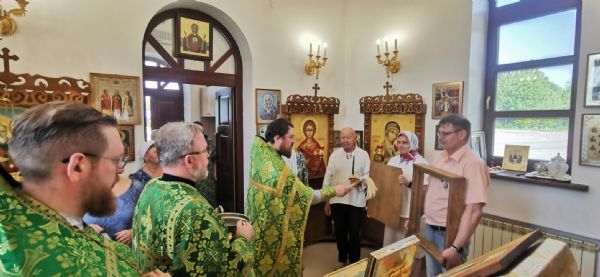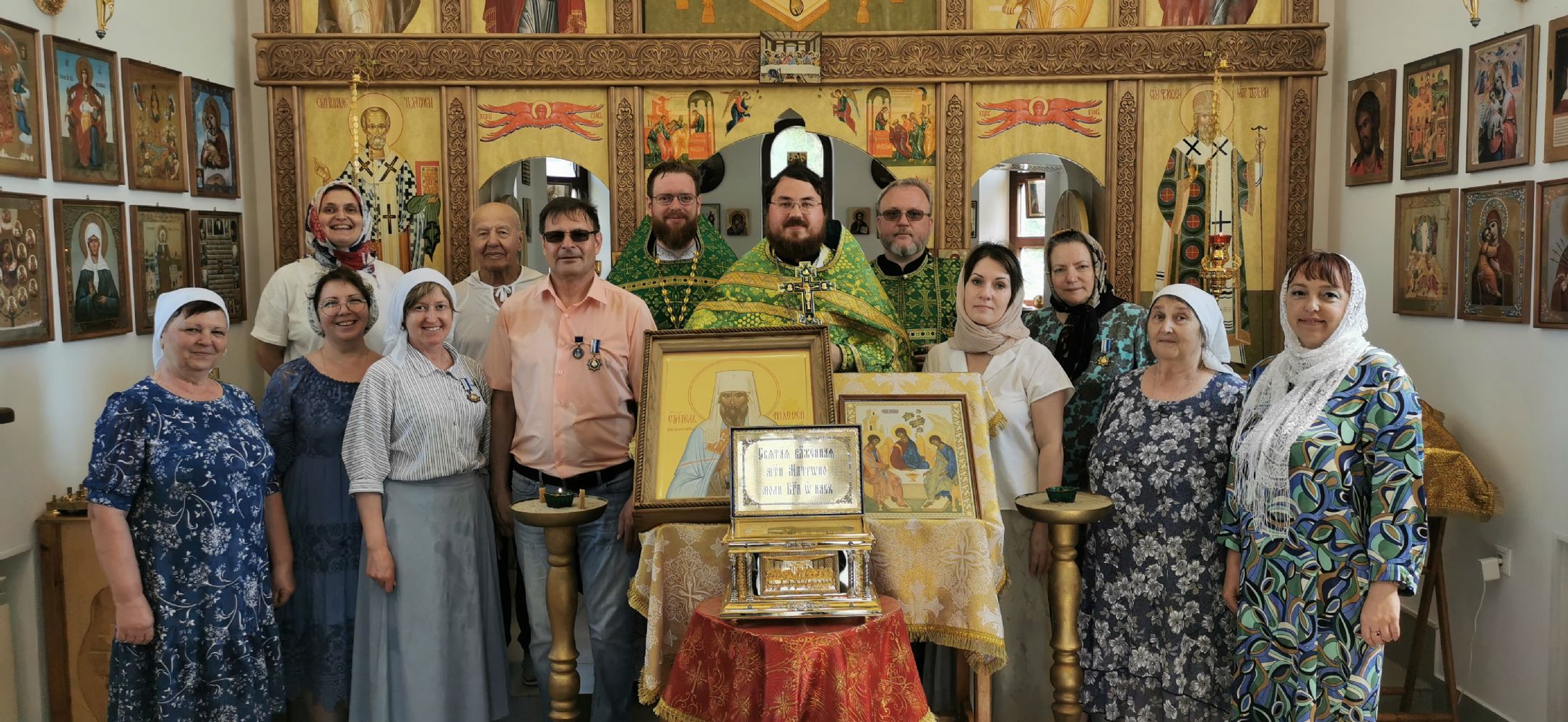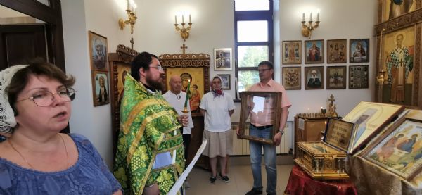 Во время славления состоялось знаковое событие — освящение киота для храмовой иконы святителя Филофея. Киот ручной работы был изготовлен Новгородской мастерской Михаила и Анастасии Шалковых. Надо сказать, что храмовый образ был написан для этого храма этой же мастерской. Образ был освящен у чудотворной иконы Божией Матери "Знамение" который уже много столетий находится в Софийском кафедральном соборе Новгородского кремля.