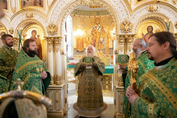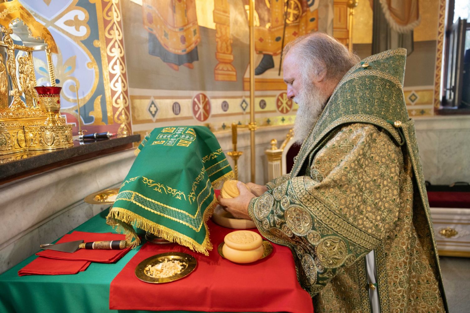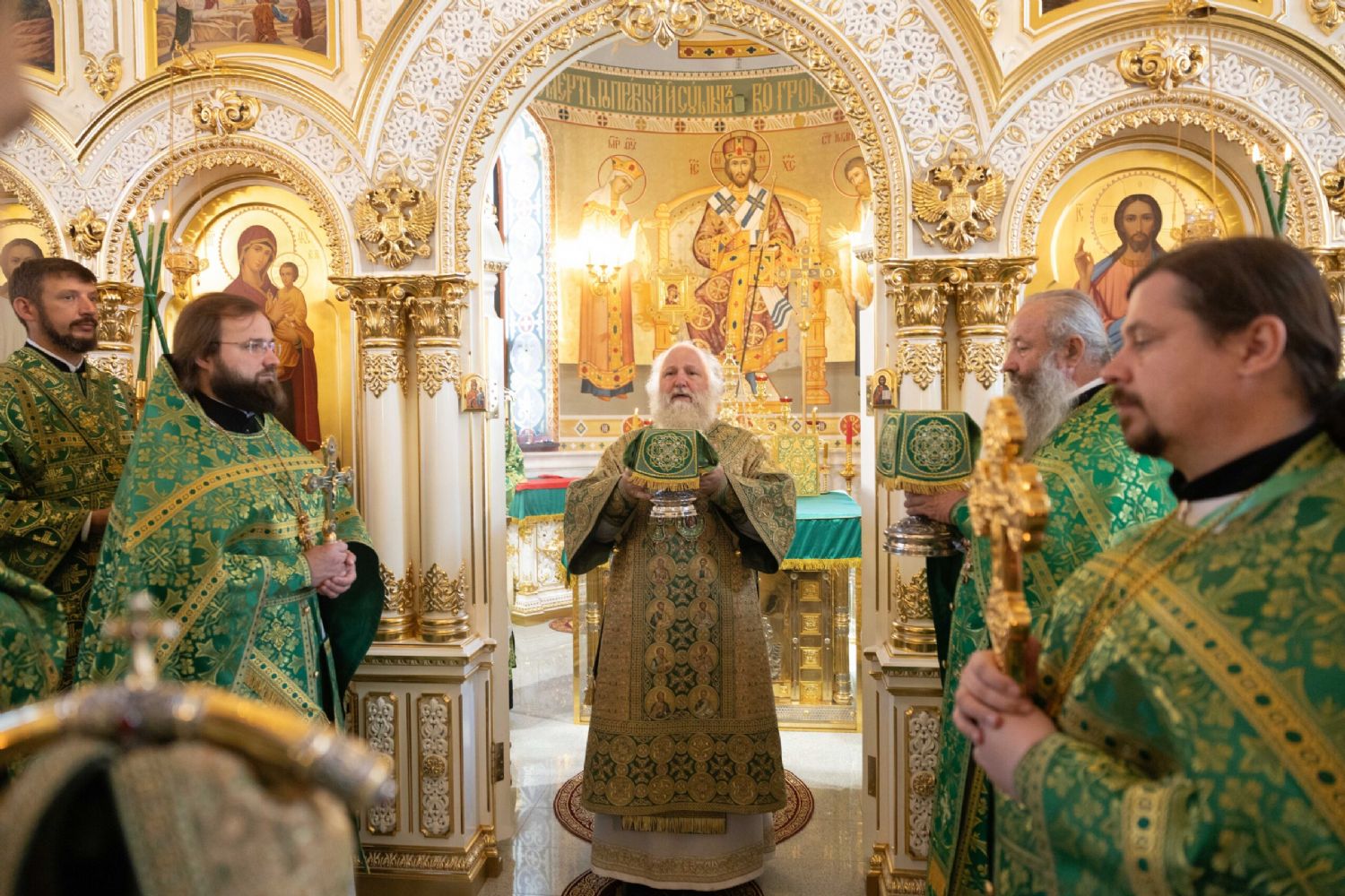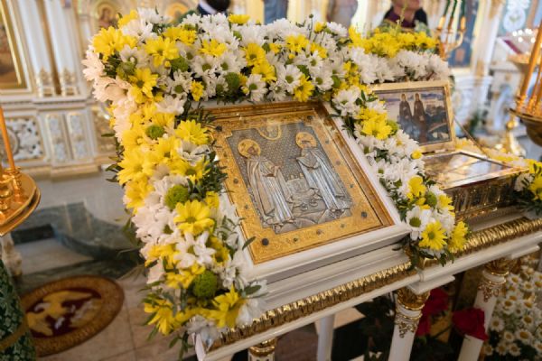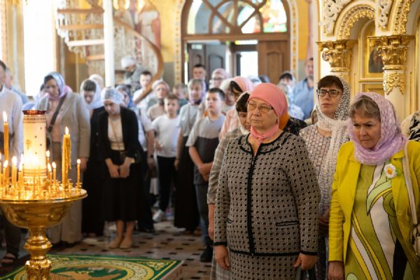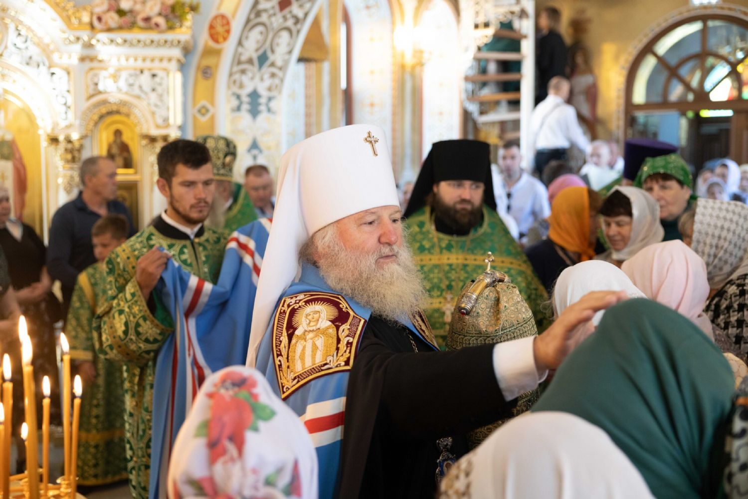 По заамвонной молитве митрополит Павел возглавил крестный ход вокруг храма, после чего было совершено славление перед иконой и мощами святых Петра и Февронии Муромских.