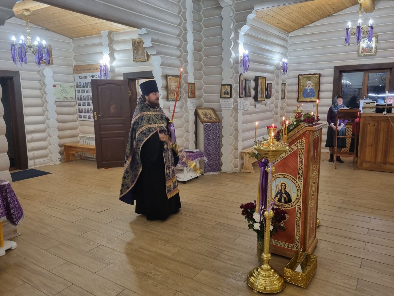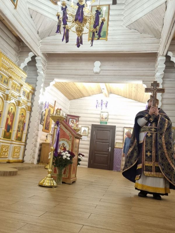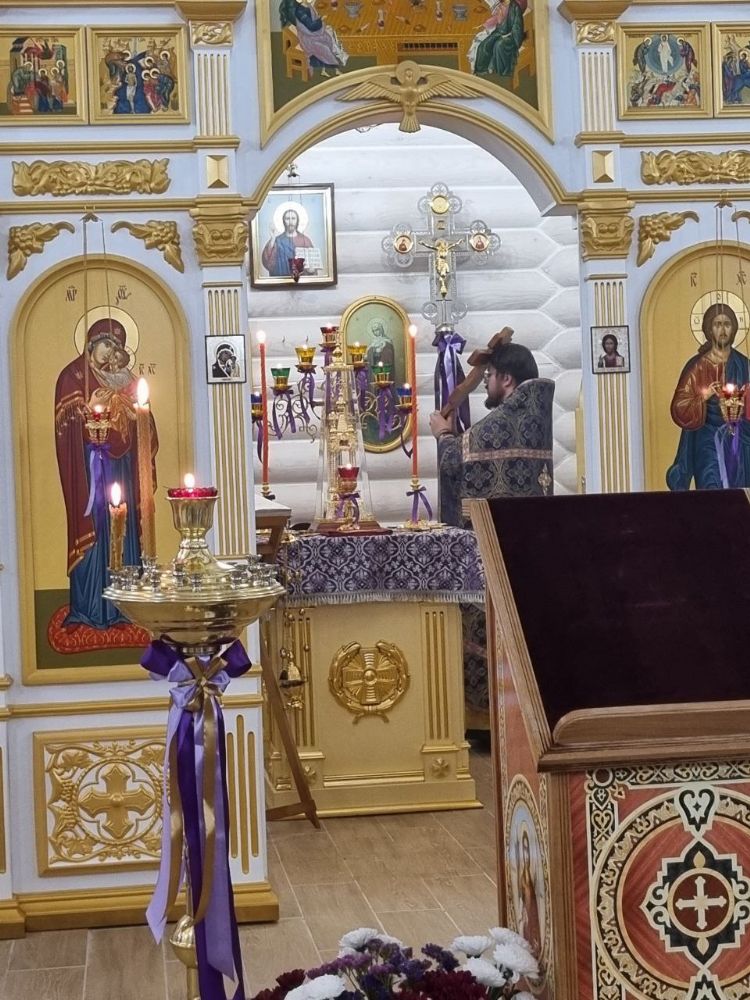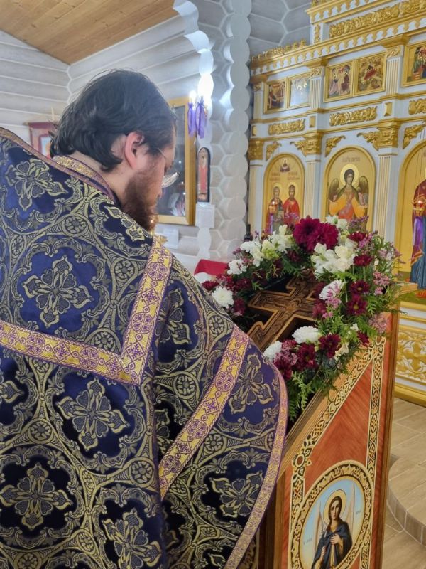 26 сентября в канун престольного праздника Воздвижения Честного и Животворящего Креста Господня, настоятель храма иерей Иоанн Рассудов возглавил праздничное Всенощное Бдение. Перед началом богослужения отец Иоанн перенес под пение тропаря праздника на Престол Крест Господень, который в течении года находится над горним местом в алтарной части храма.