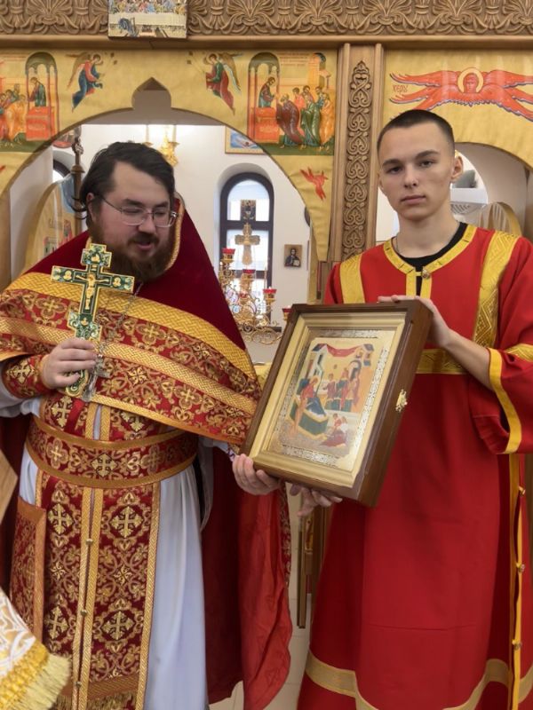 В завершении отец Иоанн поздравил молящихся с прошедшим престольным праздником и днем освящения храма. На молитвенную память настоятель передал в дар храму икону Двунадесятых праздников.
