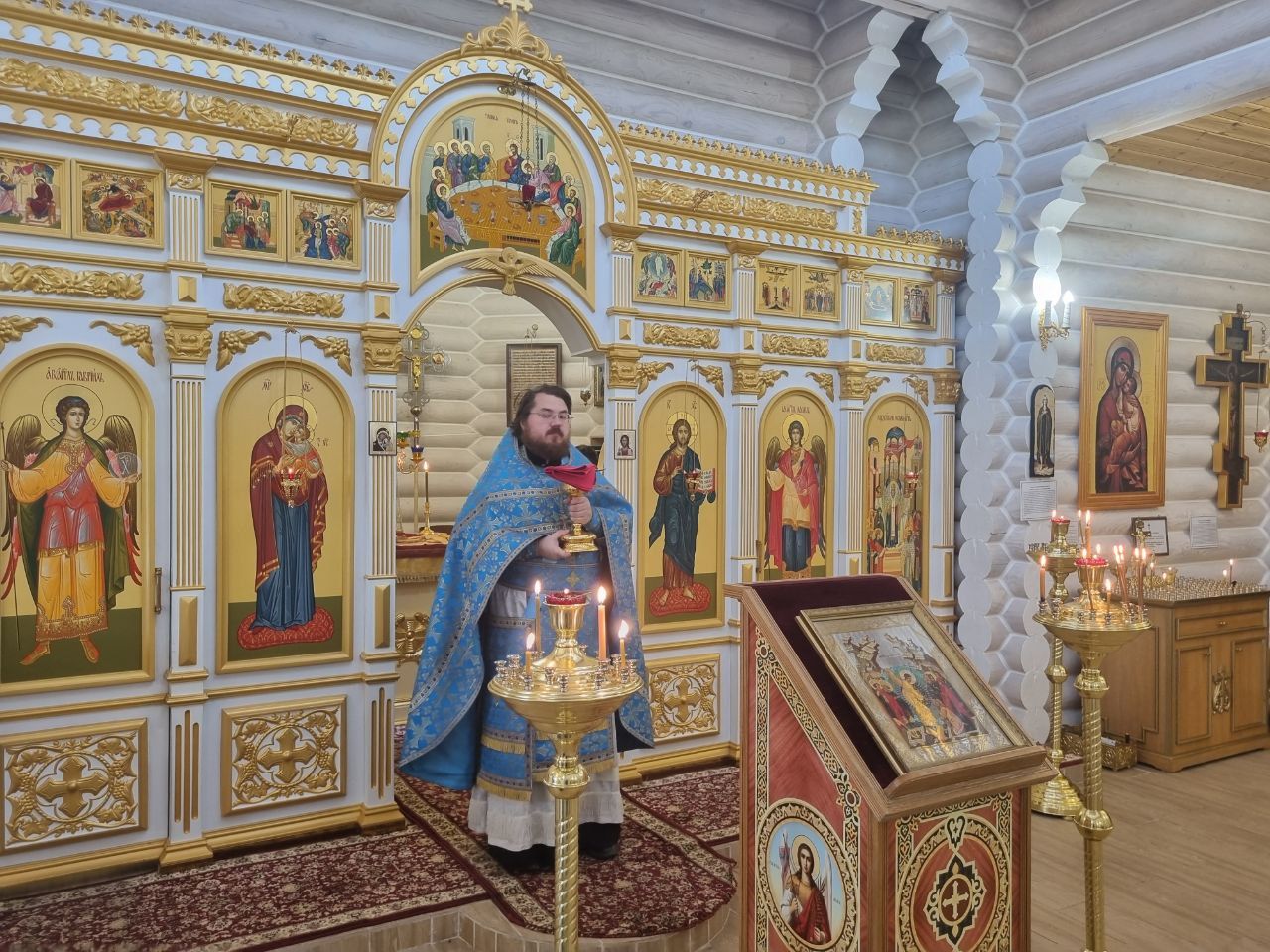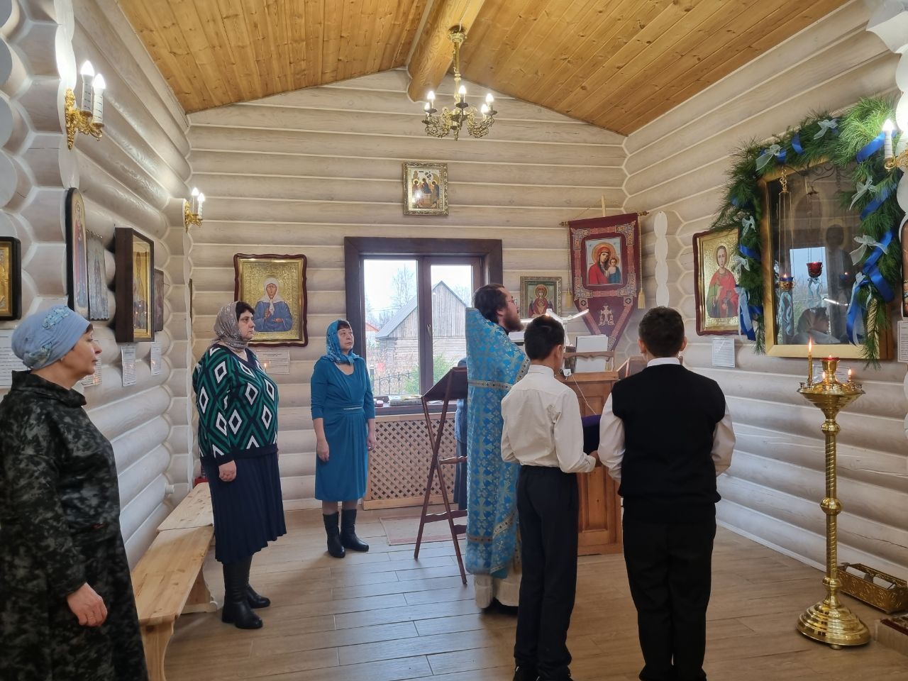 В воскресный день отец Иоанн совершил Божественную литургию. По окончании отец Иоанн произнес слово посвященное Отцам Седьмого вселенского собора и Иверской иконе Божией Матери.