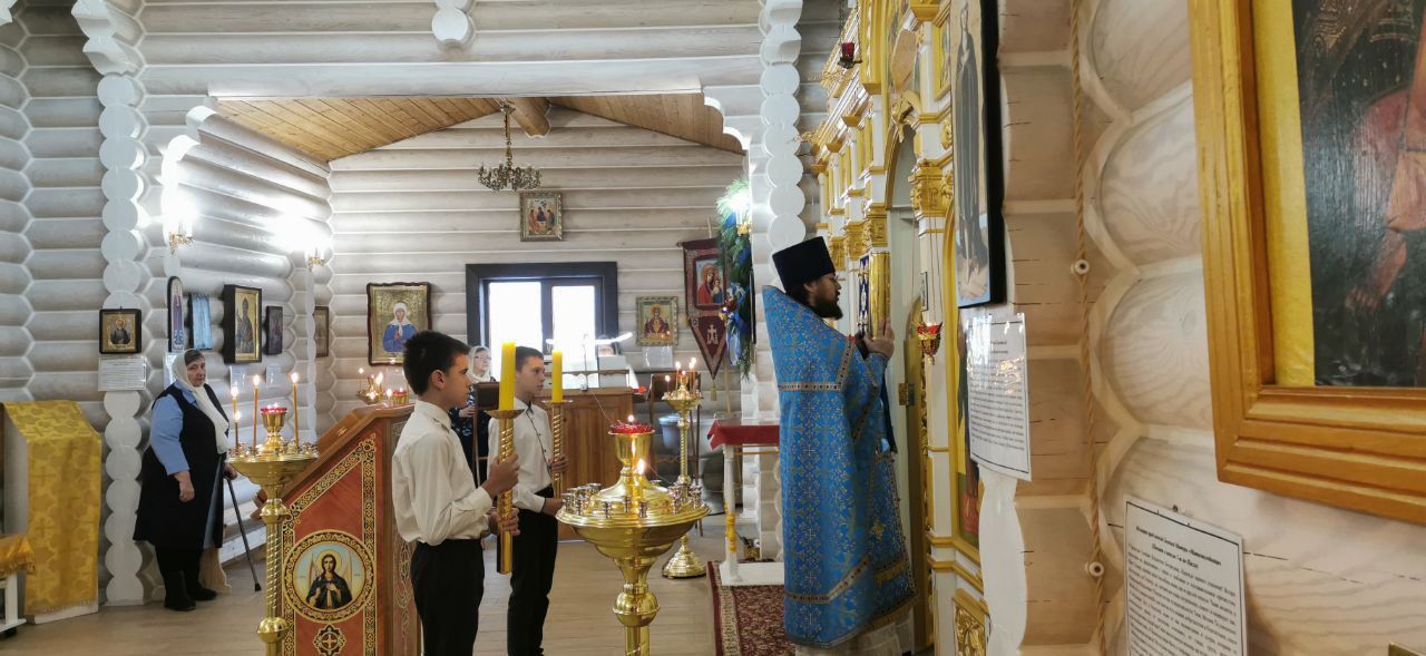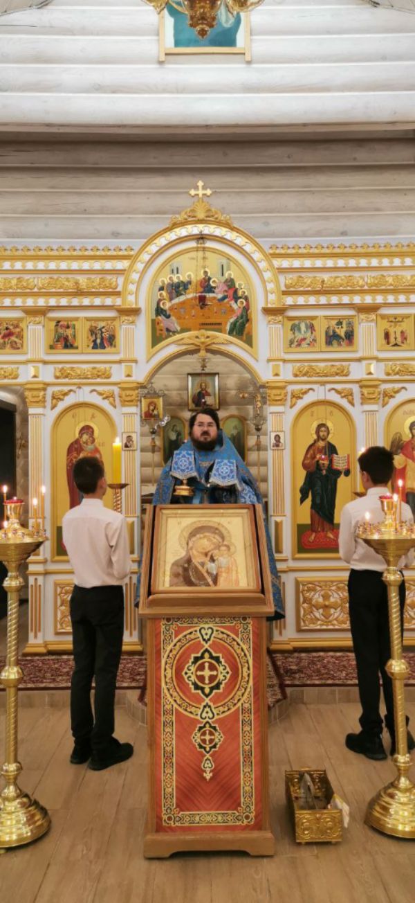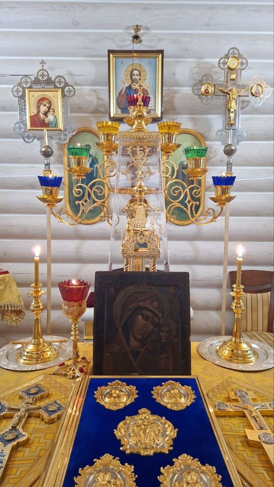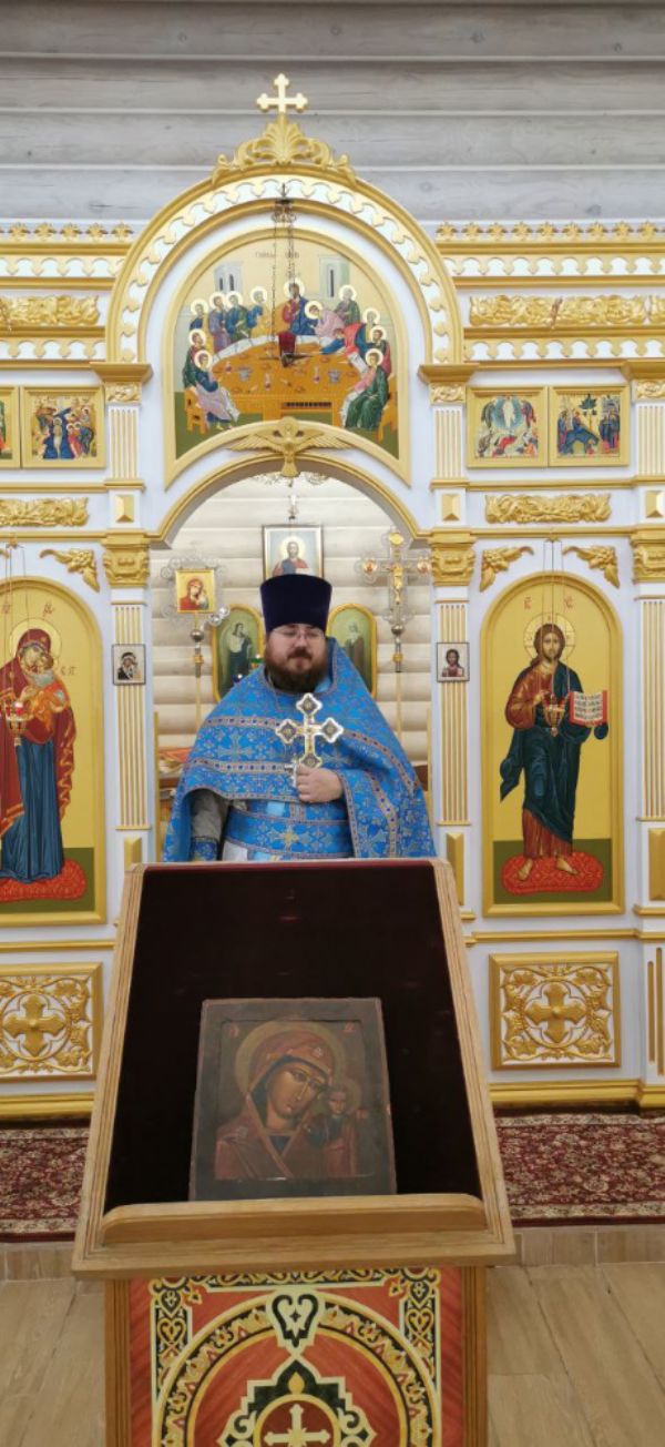 Накануне 3 ноября настоятель храма иерей Иоанн Рассудов совершил Всенощное Бдение в храме Вздвижения Креста Господня. Перед полиелеем, во время пения тропаря отец Иоанн изнес к центральному аналою древний образ Казанской иконы Божией Матери датируемый 1680-1710 годом. Этот образ принадлежит настоятелю храма и его матушке.