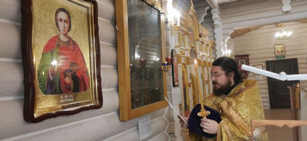16 ноября в неделю 23-ю по Пятидесятнице, день памяти великомученика Георгия Победоносца и собора святых Бессребреников, настоятель храма иерей Иоанн Рассудов совершил молебен, а затем часы Божественную литургию. Накануне в храме Воздвижения Креста Господня совершалось Всенощное Бдение. Во время славления отец Иоанн прочитал молитвы перед образами великомученика Георгия Победоносца и великомученика и целителя Пантелеимона, которых входит в собор святых Бессребреников.