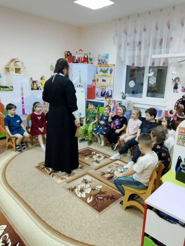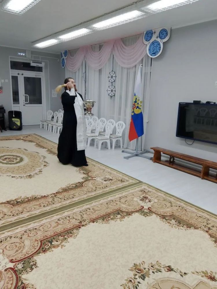 Во второй половине дня отец Иоанн совершил освящение здания детского сада. Входе встречи с воспитанниками сада, отец Иоанн рассказал детям и воспитателям о празднике Крещения Господня.