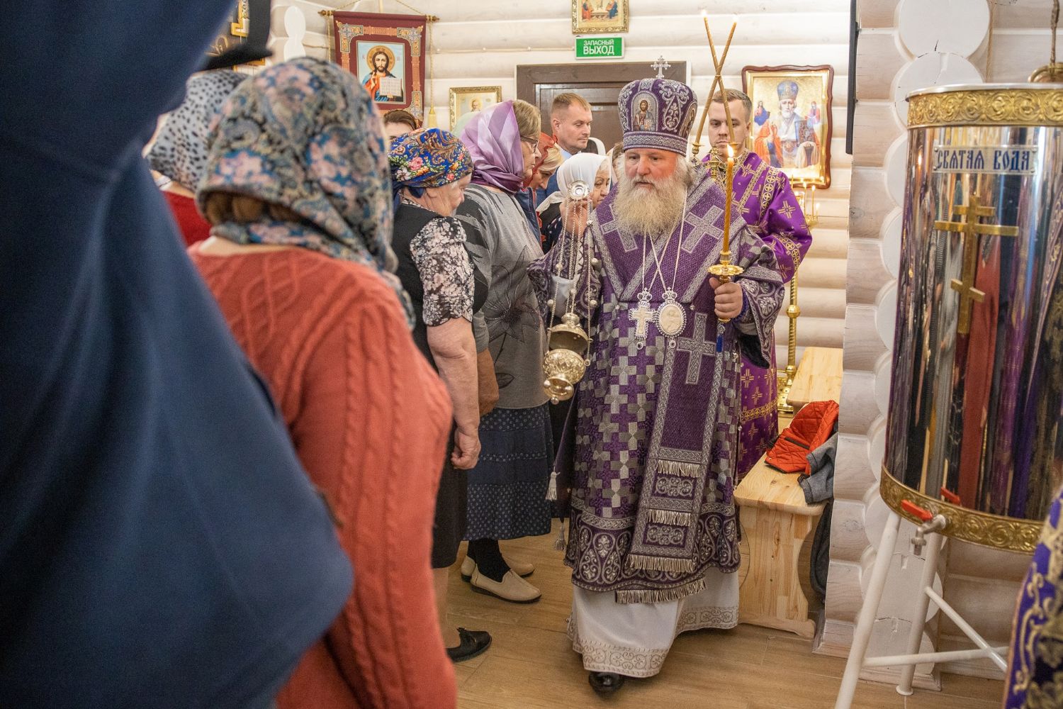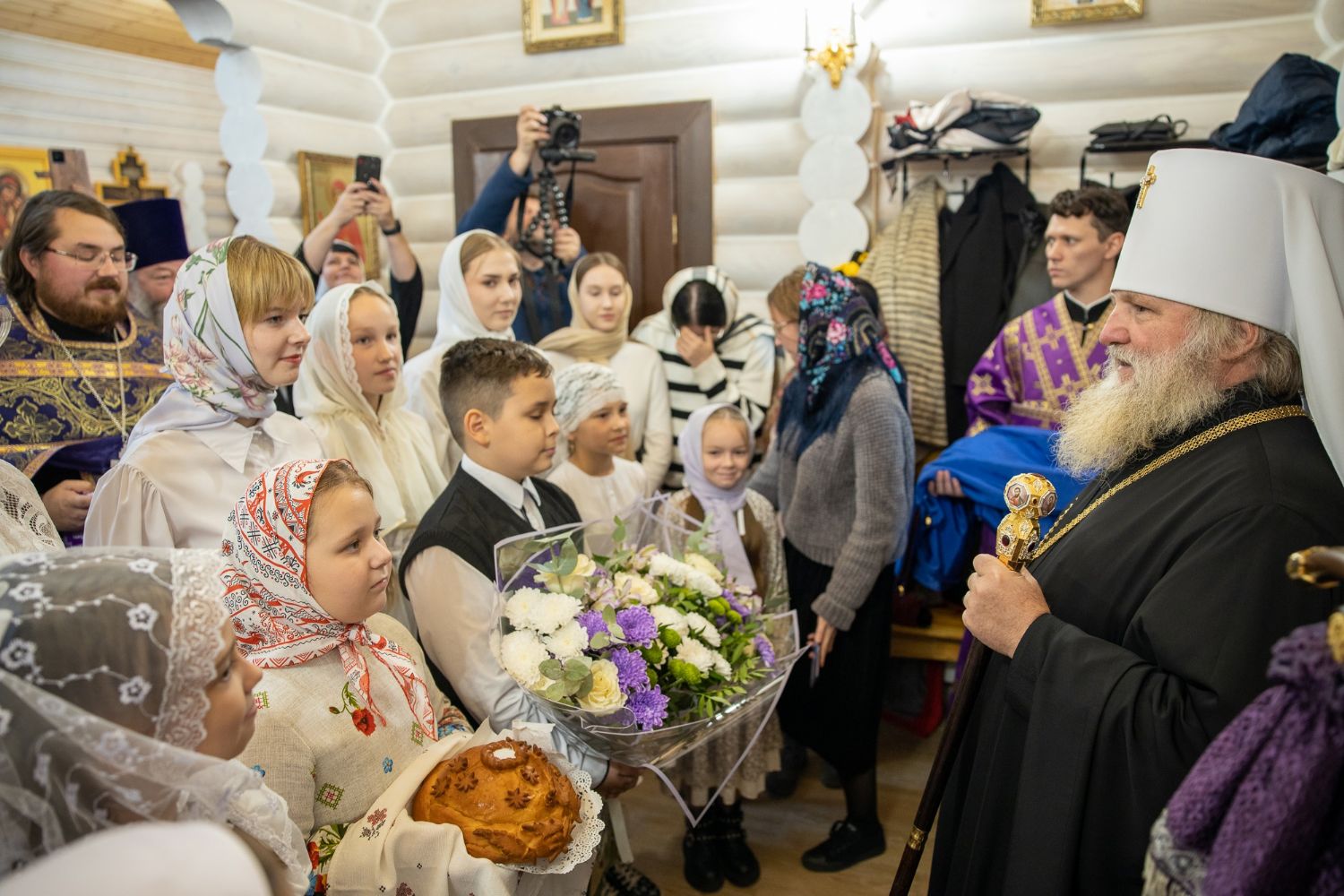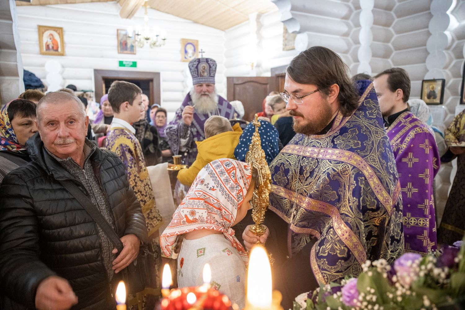 «Дорогие братья и сёстры, позвольте от сердца, от души поздравить всех с двунадесятым праздником Воздвижения Честнаго Животворящего Креста Господня! Этот храм посвящён именно этому празднику.