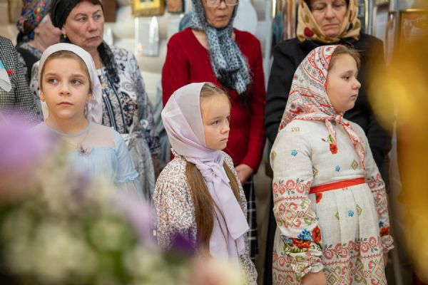 Перед богослужением была принесена частица Честного и Животворящего Креста Господня для поклонения верующим.