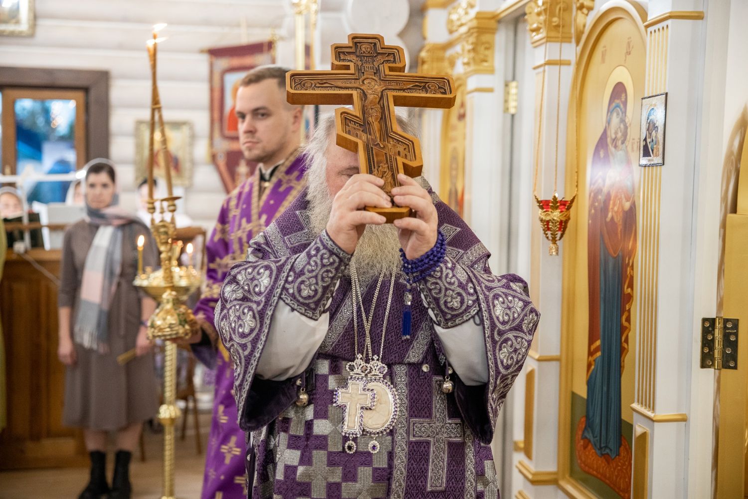 Сегодня особый день тем, что частица древа Креста Господня, которую мы видим в ковчеге, на котором Спаситель проливал кровь за нас с вами, сегодня с нами здесь. Это великая святыня для нас, омытая кровью, за наши грехи.