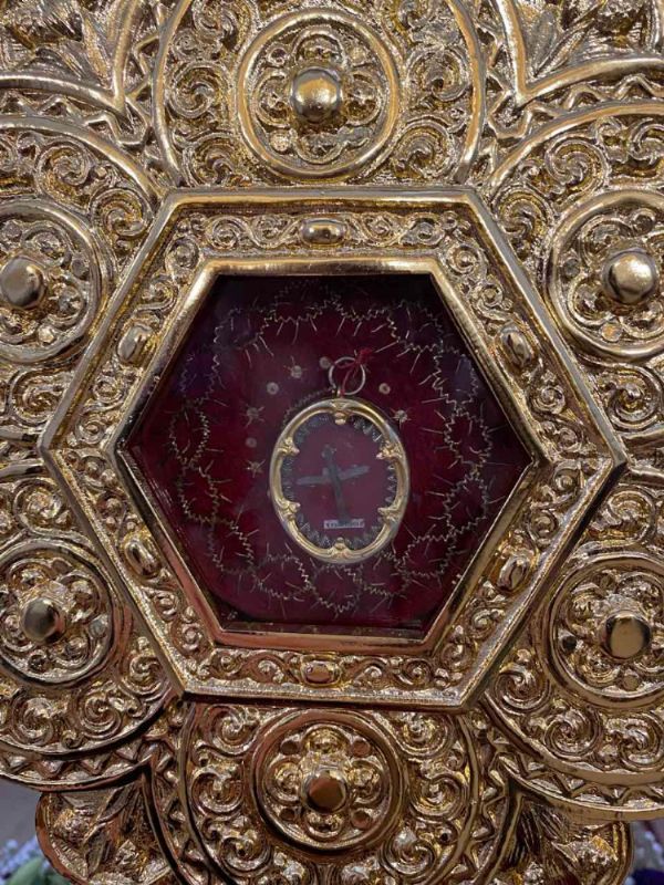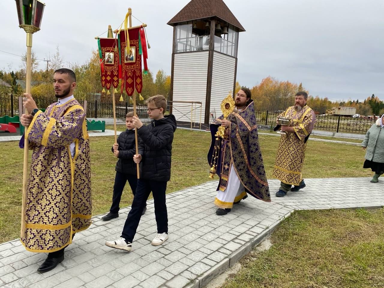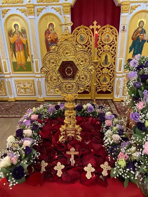 По окончании литургии был совершен Крестный ход вокруг храма с частью Древа Животворящего Креста Господня.