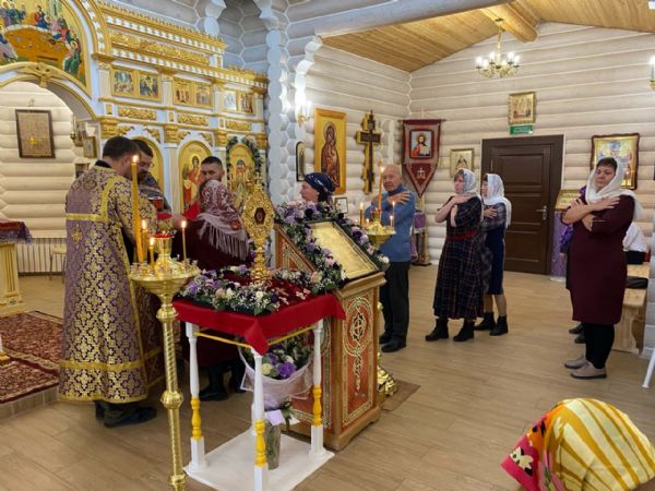 27 сентября в праздник Воздвижения Честного и Животворящего Креста Господня, настоятель храма иерей Иоанн Рассудов совершил Праздничную Божественную литургию. в центре храма на аналое находился ковчег с частью Древа Животворящего Креста Господня, привезенная накануне митрополитом Ханты-Мансийским и Сургутским Павлом в наш поселок.
