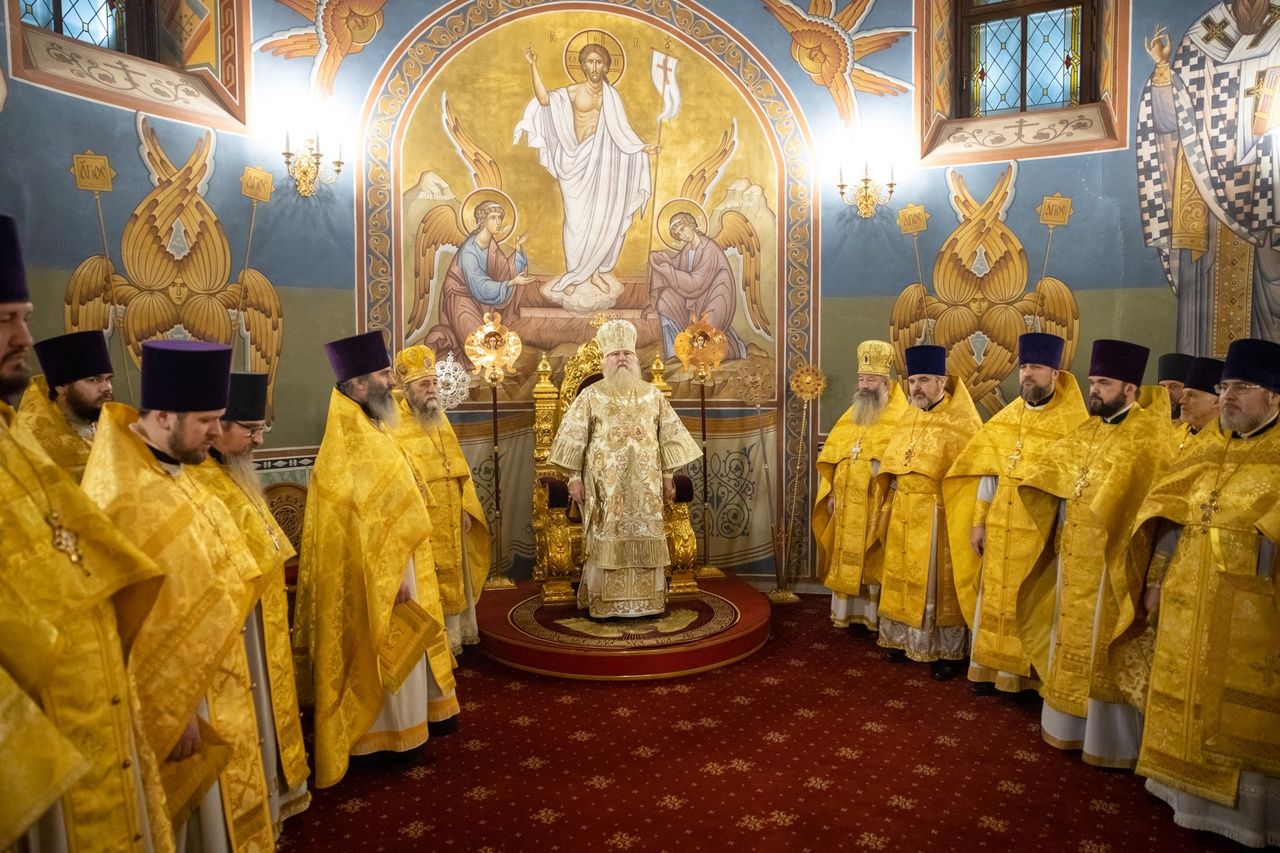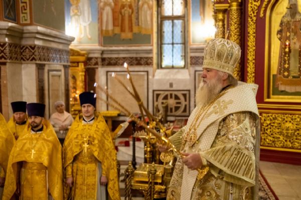Его Высокопреосвященству сослужили: благочинные и духовенство Ханты-Мансийской епархии. На сугубой ектении были вознесены особые прошения, владыка прочитал молитву о Святой Руси.
