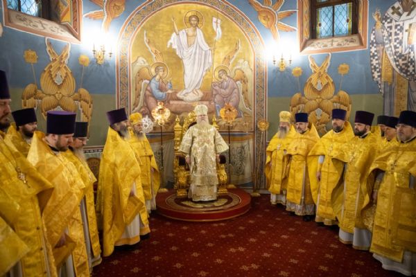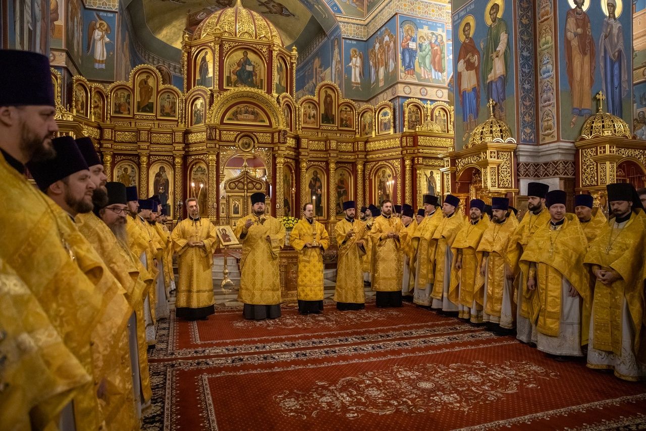 Богослужебные песнопения исполнил хор духовенства епархии.