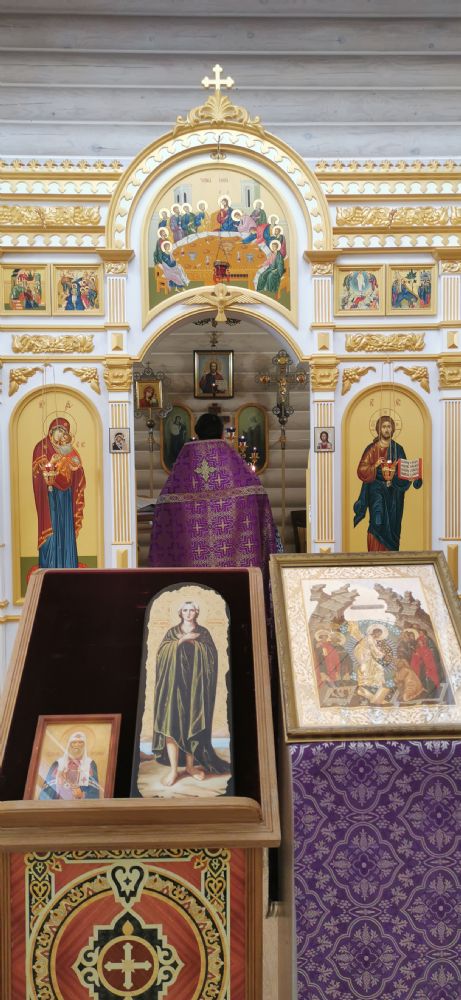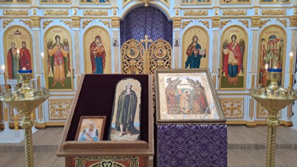 Во время славления, отец Иоанн прочитал молитвы у образов святителя Тихона и преподобной Марии Египетской.