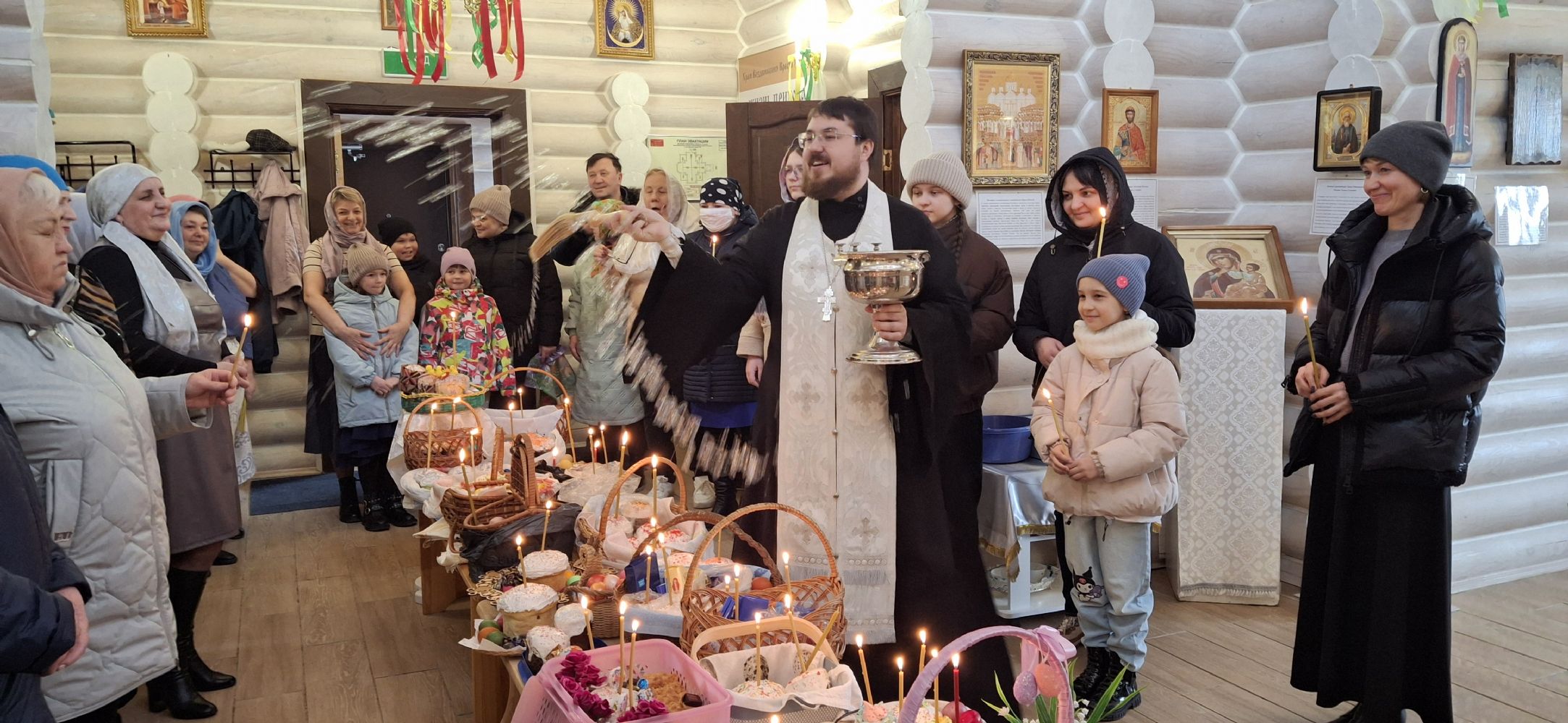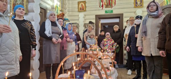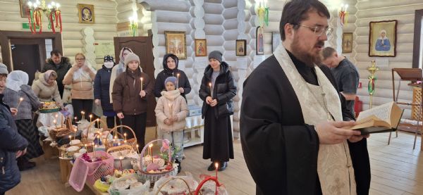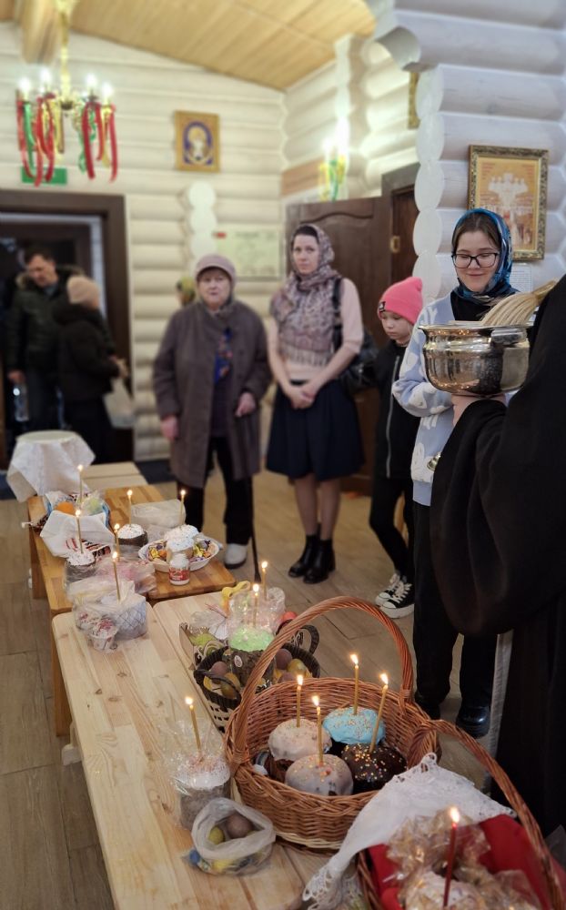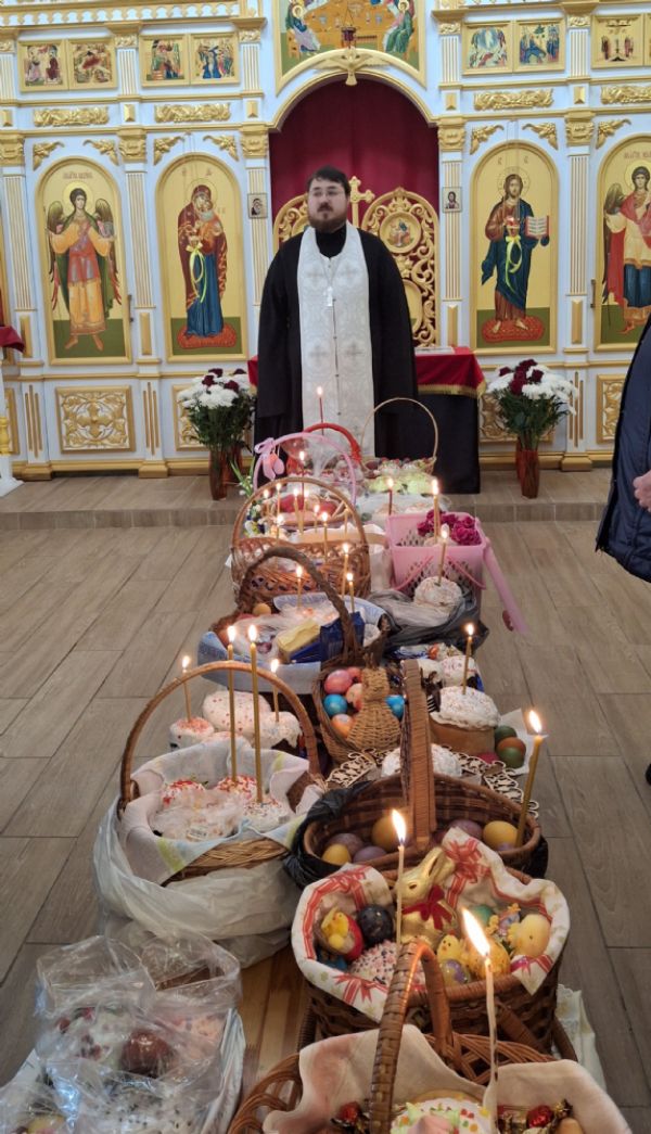 19 апреля в храме Воздвижения Креста Господня, настоятель храма иерей Иоанн Рассудов совершил освящение Пасхальной снеди.