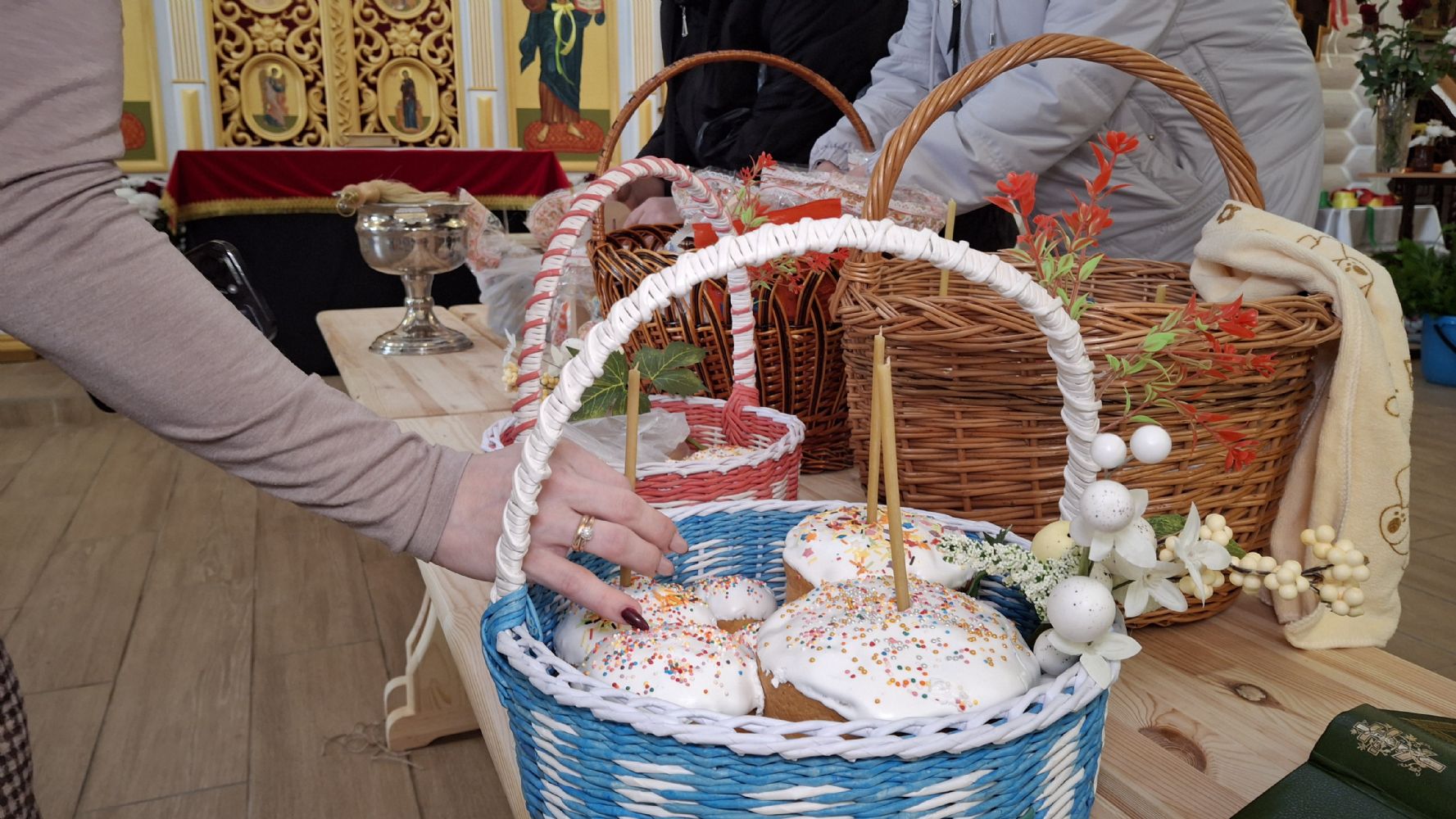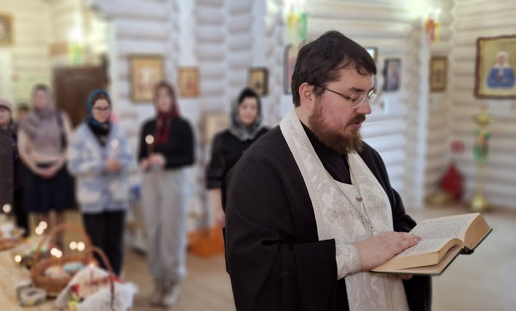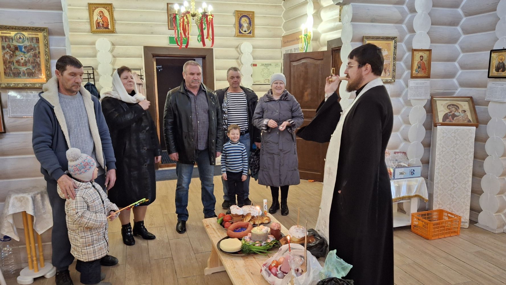 19 апреля в храме Воздвижения Креста Господня, настоятель храма иерей Иоанн Рассудов совершил освящение Пасхальной снеди.