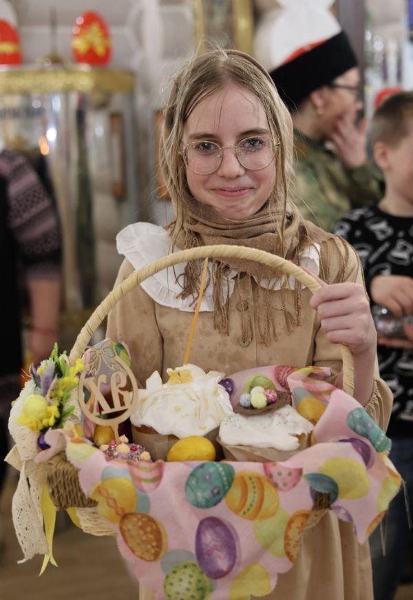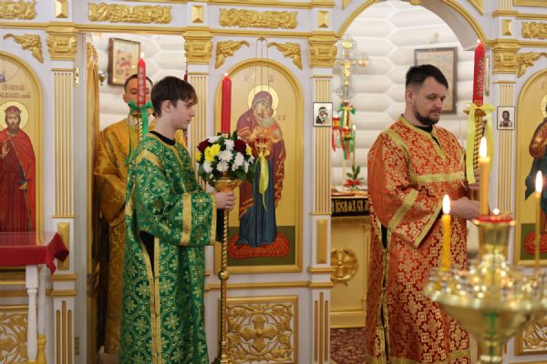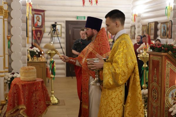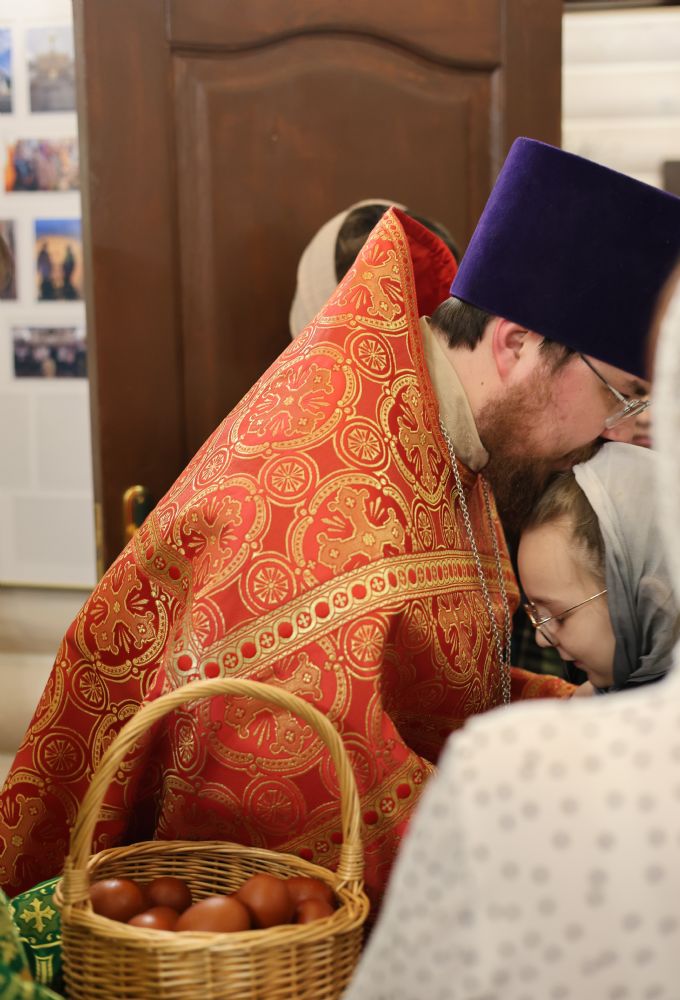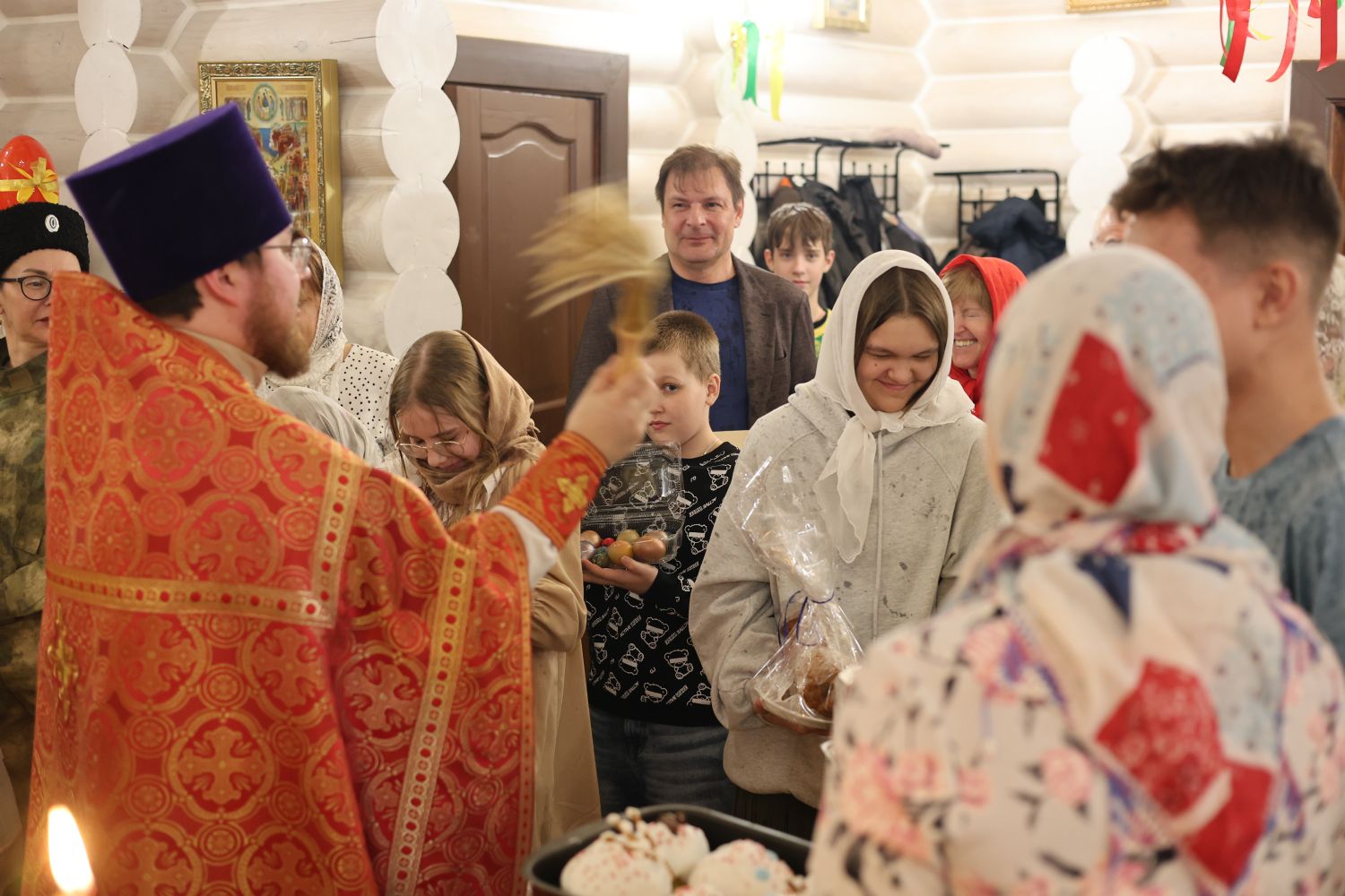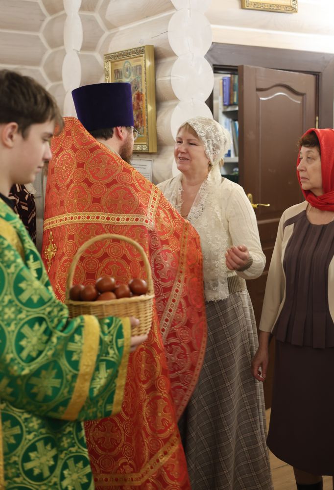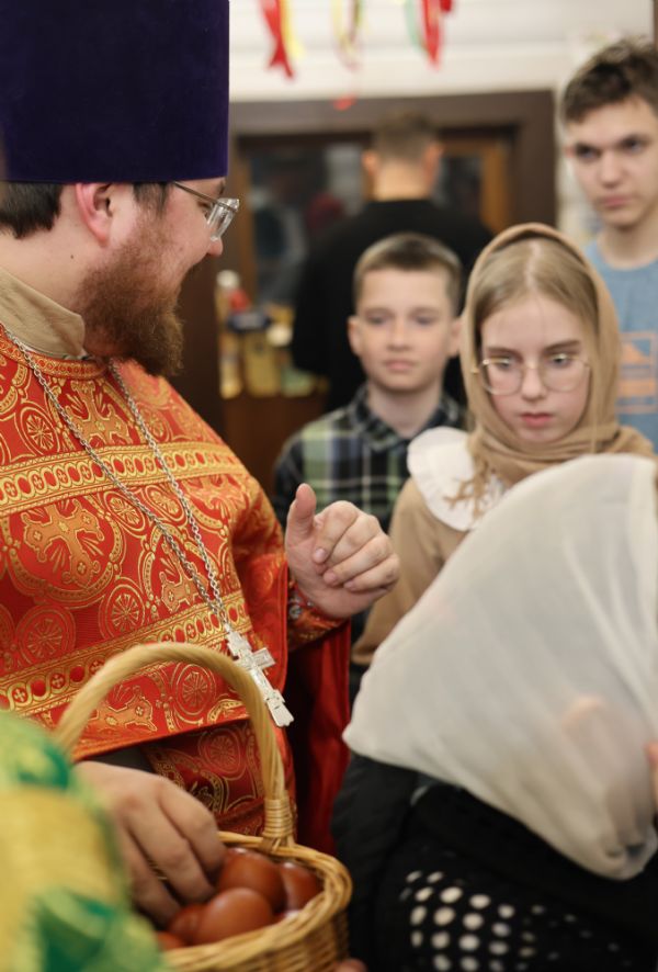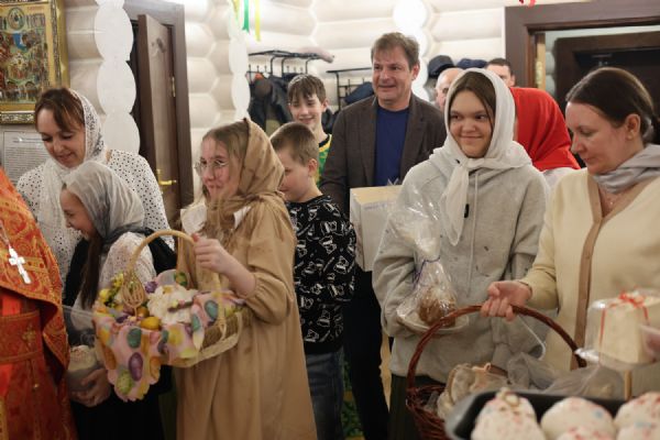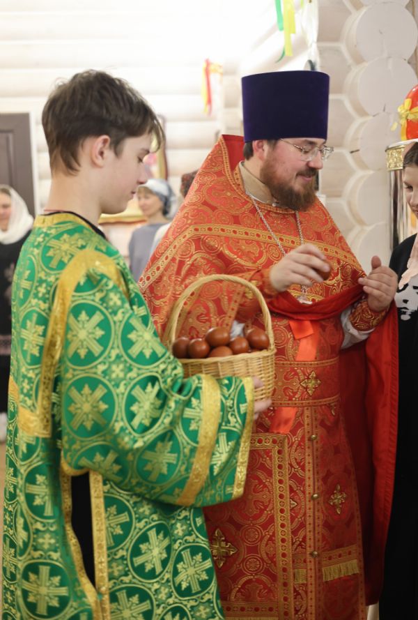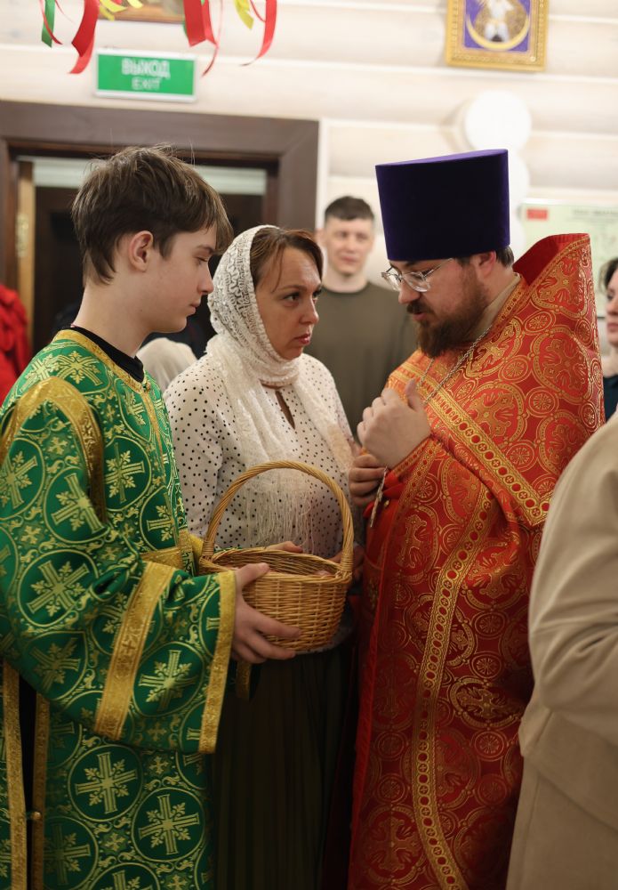 За Пасхальной Божественной литургией, отец Иоанн вознес молитву о Святой Руси, читаемую по благословению Патриарха Московского и всея Руси Кирилла. После заамвонной молитвы были освящены артос, принесенные верующими куличи, пасхи и яйца.