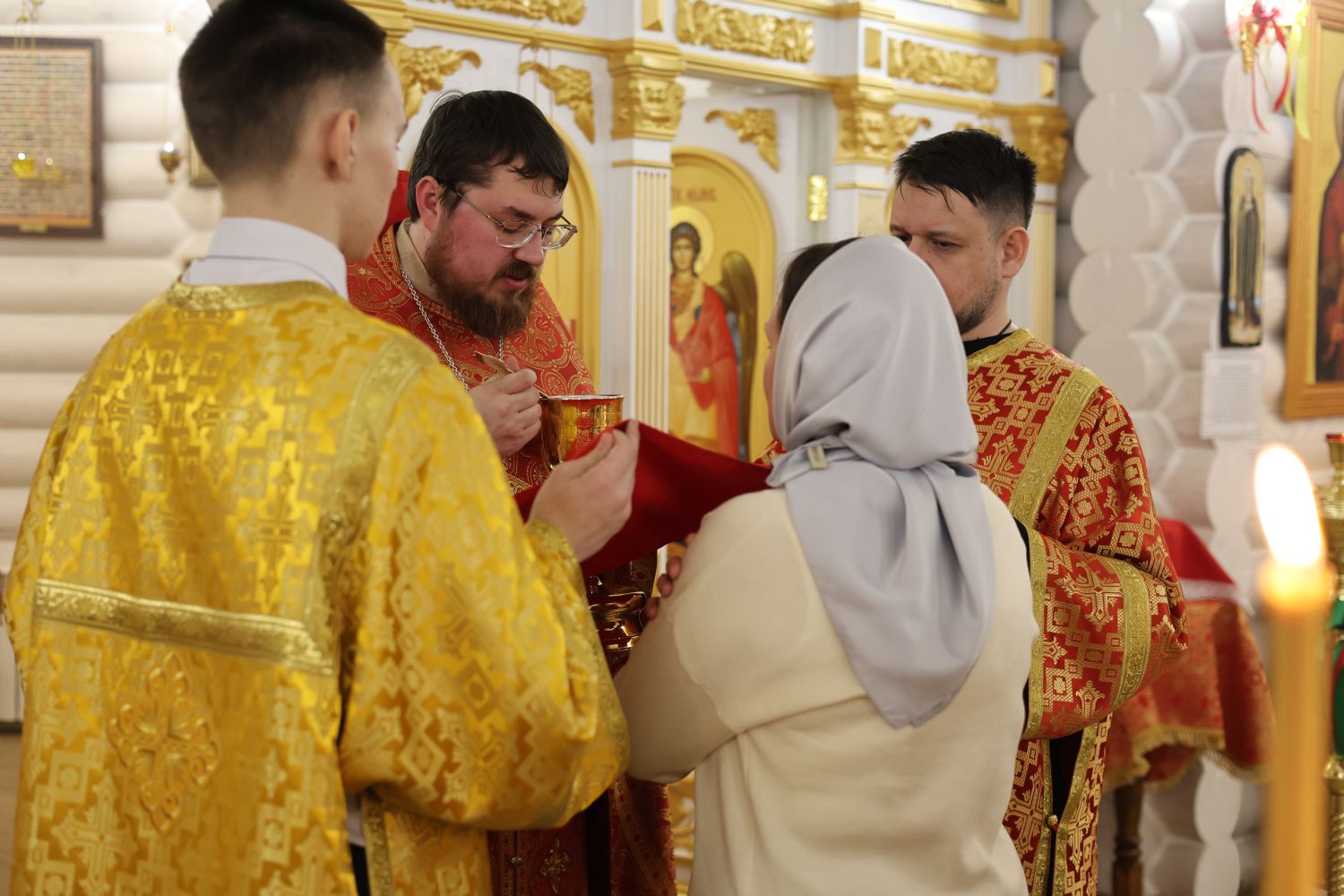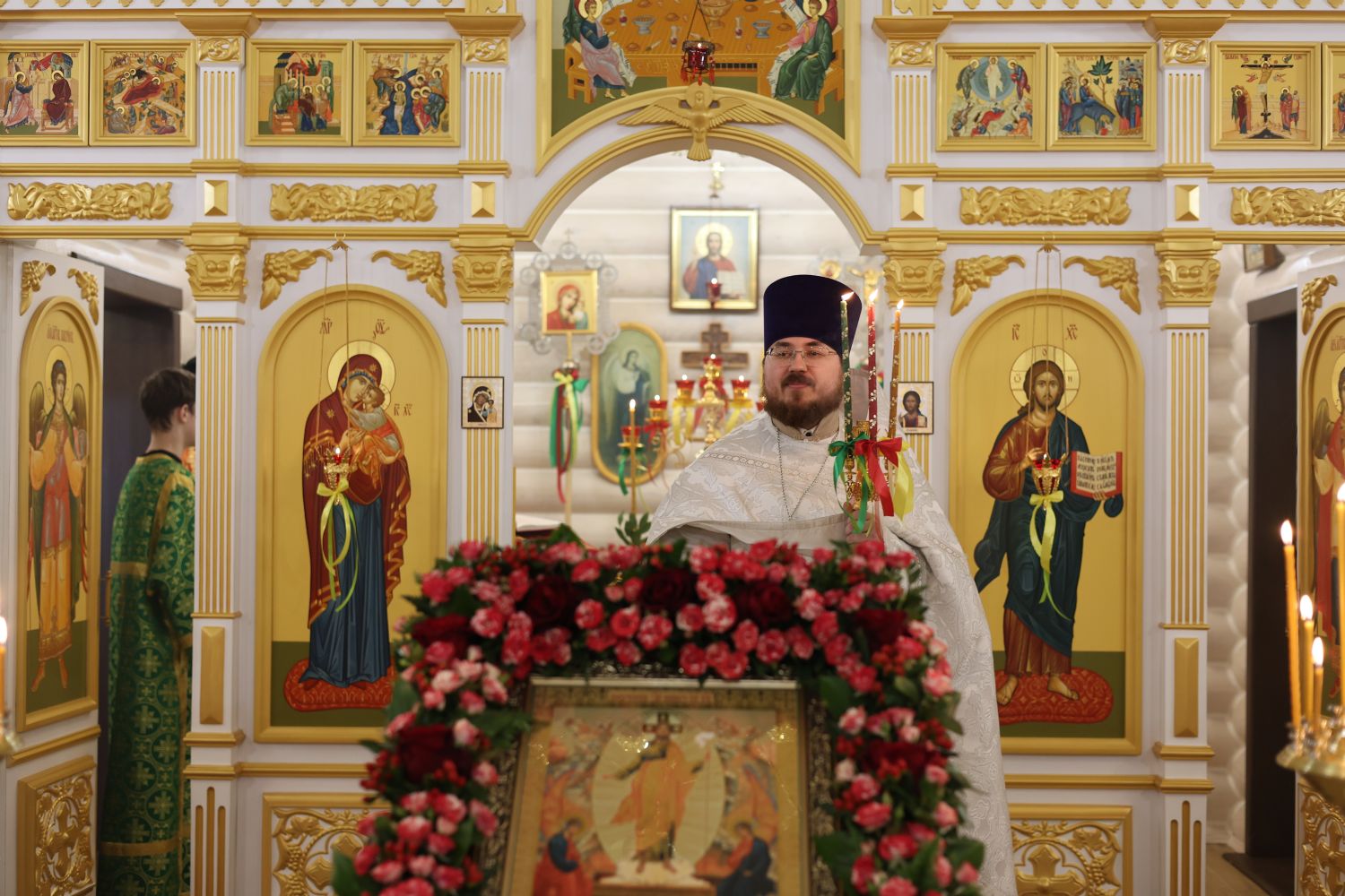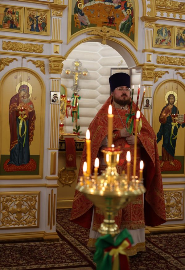 В Пасхальную ночь настоятель храма иерей Иоанн Рассудов совершил череду богослужений: полунощницу, пасхальную заутреню и Божественную литургию.